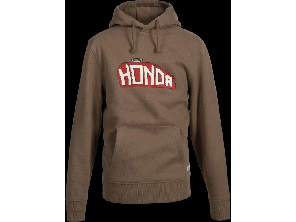 Pískově zbarvený design je umocněn výrazným oranžovým potiskem logem Honda na hrudi. Praktické detaily, jako je klokaní kapsa a nastavitelná kapuce, činí tuto mikinu obzvláště funkční. „Urban Fun“ ztělesňuje nenucené pohodlí a hravého ducha Hondy pro každodenní nošení.