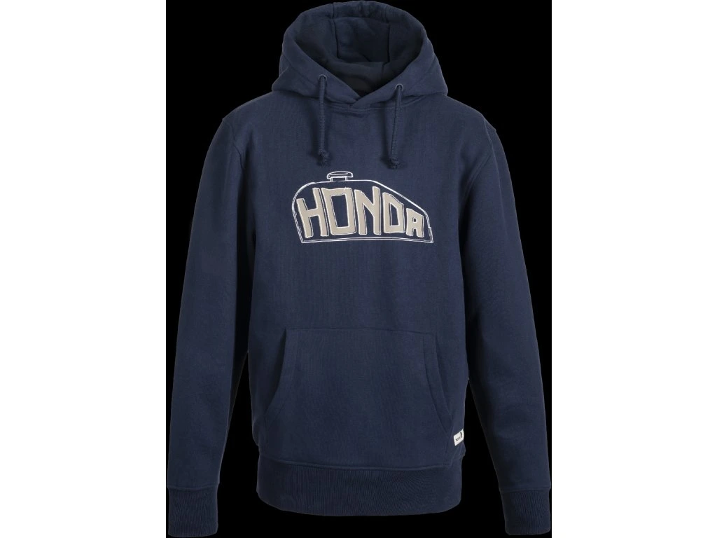 Mikina s kapucí Honda Tank je vyrobena z kartáčované bavlněné směsi, která nabízí teplo, odolnost a měkký pocit. Design v tmavě modré barvě je umocněn výrazným potiskem logem Honda na hrudi.