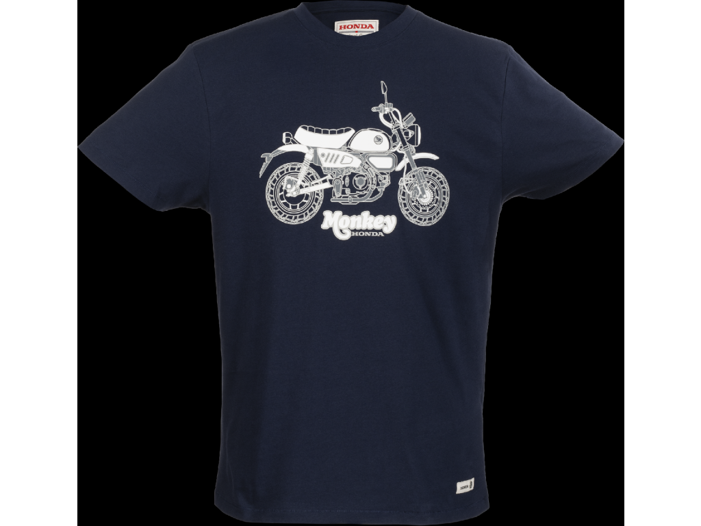 Ikonický motocykl Monkey na hrudi, potisk křídlem Honda na zádech pod krkem.